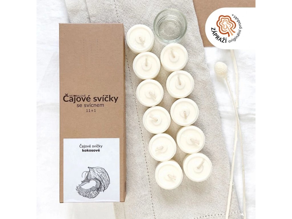 Kokosová svíčka čajová se svícnem (11 ks)