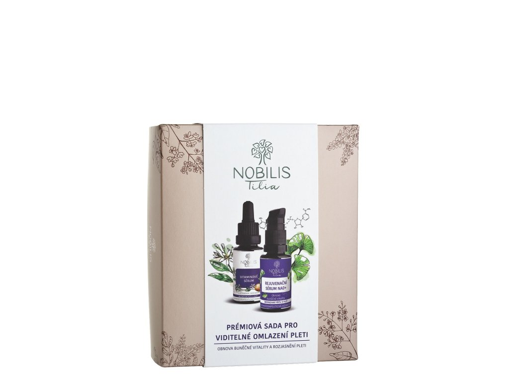PRÉMIOVÁ SADA PRO VIDITELNÉ OMLAZENÍ PLETI je navržena tak, aby podporovala její regeneraci, rozjasnění a vyhlazení. Pečlivě vybrané aktivní látky s RejuveNAD® a vitamíny podporují obnovu buněčné vitality a přirozenou regeneraci pleti. Rejuvenační sérum NAD+ viditelně omlazuje pleť již během 42 dnů pravidelného používání. Vitamínové sérum s bakuchiolem, mořským fenyklem a vitaminy C a E pleť rozjasňuje, vyhlazuje vrásky a zvyšuje odolnost vůči vnějším vlivům. Jemná vůně růže damašské, ho-sho, gerania a citrusů proměňuje každodenní péči v harmonický rituál.
