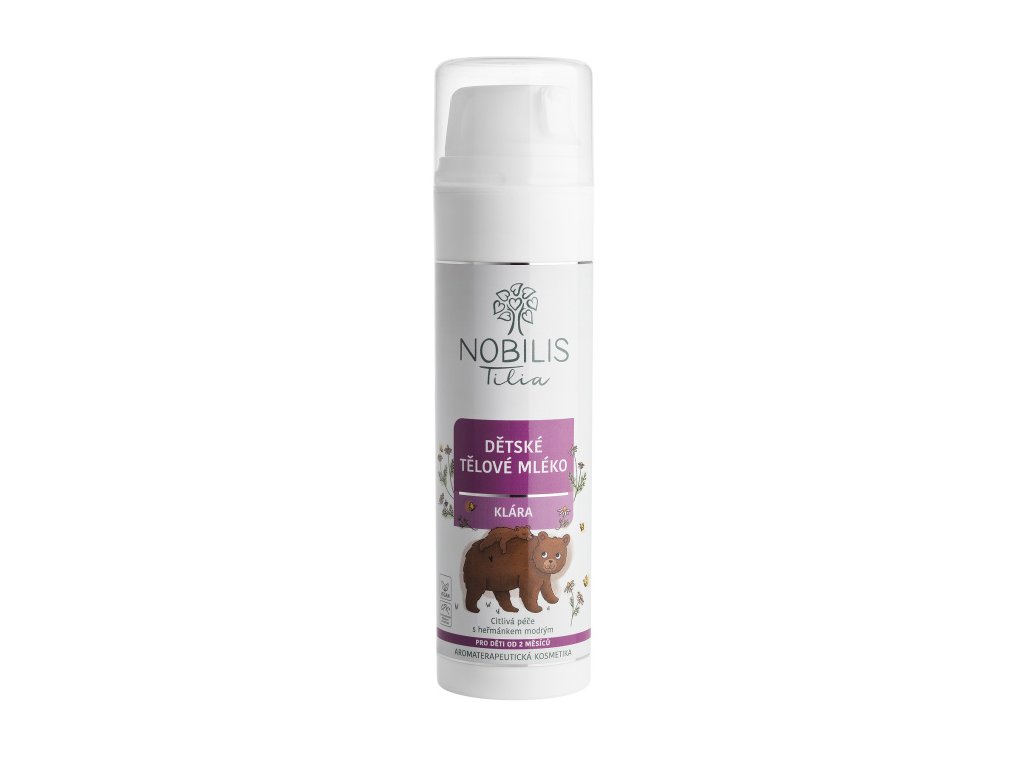 TĚLOVÉ MLÉKO KLÁRA s jemnou a lehkou konzistencí účinně pečuje o citlivou pokožku všech dětí, rychle se vstřebává, hydratuje a pomáhá udržet její přirozené pH. Složení s vitaminem E a éterickým olejem z heřmánku modrého pokožku účinně regeneruje a chrání. Heřmánkové aroma navíc zklidňuje roztěkanou mysl a dodává dětem pocit bezpečí a klidu.